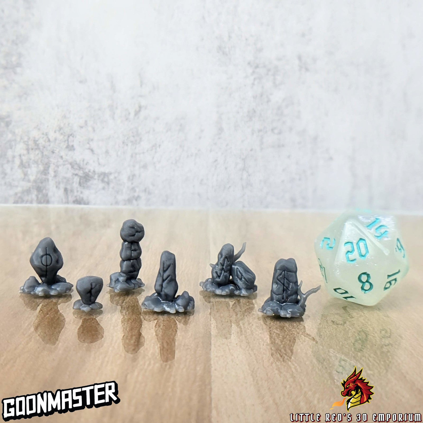 This set of six rune stones scatter make an excellent addition to any ancient, themed base, terrain, or diorama.