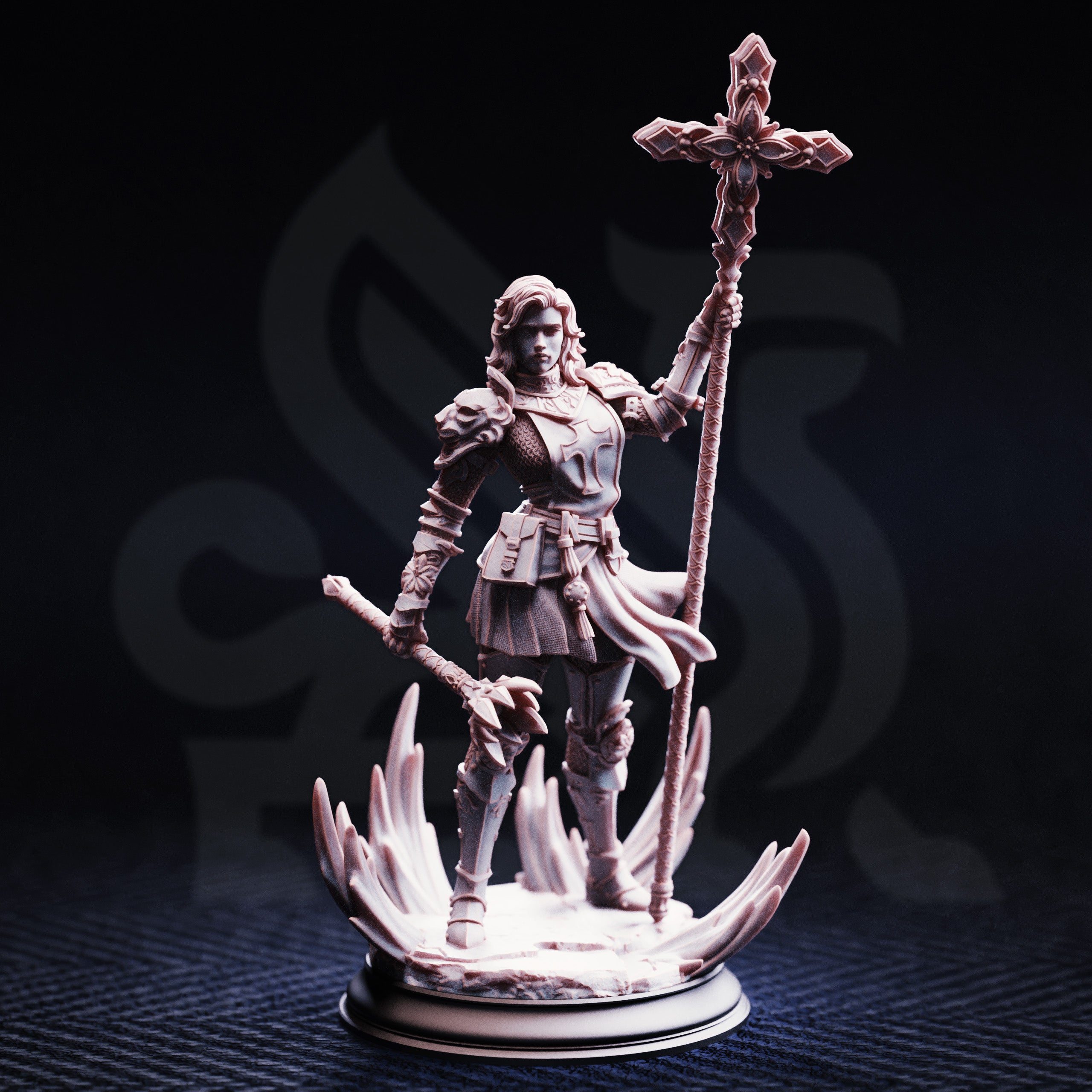 A bastard child of Baldur’s royal house of Grimshaw, Sara was raised in a convent of the Church of the Tharameni, though closely watched by her lineage. When it was discovered that she held a natural affinity to Minera’s Breath and Cedhelieth, Sara was sent to Draksborne for tutoring in her newfound gift. When her training had completed, Sarah was inducted into Baldur’s Royal Court as the Court Healer. When rebellion arose however, she was sent away for fear of her being slain or taken as a hostage, joining the Church in Belfrie. Now she wears the pauldrons of her homeland with pride as she joins the expedition to Sudd Tohst.